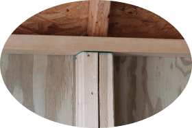We double the wall studs wherever our T1 - 11 siding has a seam, so that both sections of siding will have a full stud width to be fastened to. This prevents edge tear - outs on the siding and strong adhesion that will stand up to strong winds and years of use.